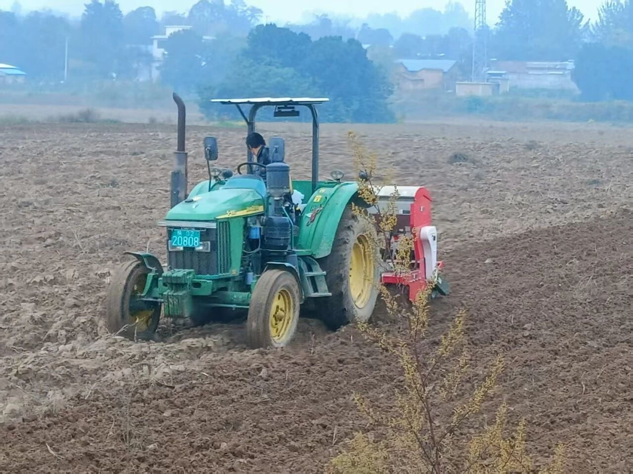 在百公里外的銅川市耀州區(qū)小丘鎮(zhèn)中原村,亞澳農(nóng)機(jī)同樣成為搶種主力。“播種期推遲了近十天,土壤又濕,最怕播深不均和倒伏。”農(nóng)機(jī)手操控著亞澳寬幅溝播機(jī)穿梭田間,機(jī)具搭載的指夾式排種器實(shí)現(xiàn)精準(zhǔn)下種,配合可調(diào)節(jié)播深系統(tǒng),將播種深度嚴(yán)格控制在2—4cm的最佳范圍,既滿足銅川市農(nóng)機(jī)推廣站副站長姚關(guān)盈提出的“淺播搶積溫”要求,又通過均勻播種避免了“播量過大易倒伏”的風(fēng)險(xiǎn)。截至目前,銅川市已調(diào)度1600余臺套農(nóng)機(jī)投入秋播,亞澳機(jī)具憑借“旋耕、播種、施肥一體化”優(yōu)勢,大幅提升了濕墑地塊的作業(yè)效率,助力農(nóng)戶把延誤的農(nóng)時(shí)搶回來。